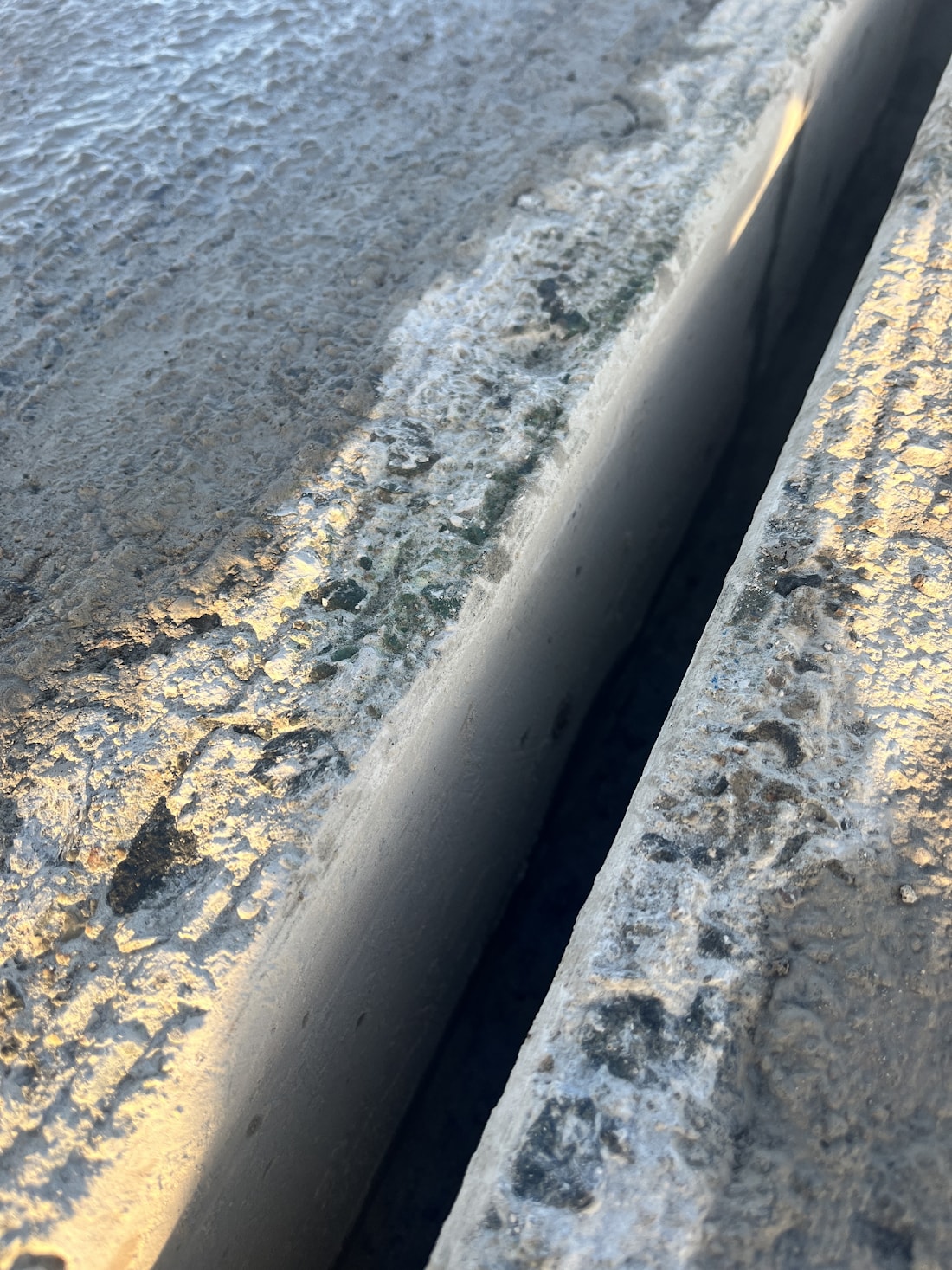 В целях предотвращения образования трещин и сколов вдоль линий борта предусмотрено устройство шва примыкания цементобетонного покрытия к бортовому камню