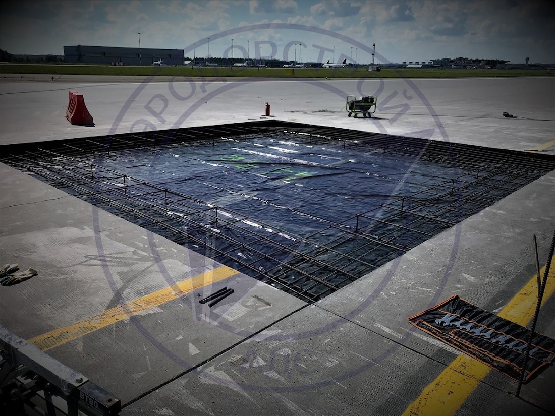 В ходе выполнения строительно-монтажных работ на ИВПП1 было заменено 11 , а на ИВПП2 14 цементобетонных аэродромных плит размером 7,5*7,5 м средней толщиной 36 см. Чтобы не нарушить целостность соседних плит, был применен неразрушающий метод демонтажа , включающий в себя нарезку на сегменты бетонного покрытия с помощью высокопроизводительных нарезчиков Cedima и Lissmac с дальнейшим использованием цанговых захватов.