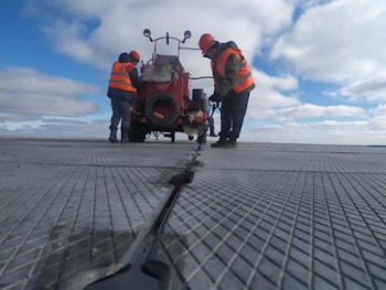 - Заключительным этапом стал монтаж заземляющих устройств для ВС и обработка поверхности нового покрытия гидрофобизирующим составом типа « Гмдрофикс-Аэро+».