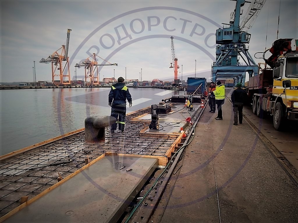 Наши строители выполняли полный комплекс работ по устройству бетонных покрытий верхних строений причалов и набережных стенок с устройством ливневой канализации и монтажом сетей электроснабжения. Также наши специалисты выполняют работы по реконструкции внешней поверхности причалов с использованием монолитного и сборного железобетона, и посредством быстротвердеющих ремонтных составов. У нас есть опыт по строительству причальных сооружений грузопассажирского и судостроительного назначения, оградительных сооружений береговых укреплений.
