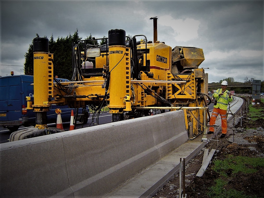 Устройство монолитных разделительных барьеров по типу Нью Джерси с помощью бетоноукладчика Gomaco