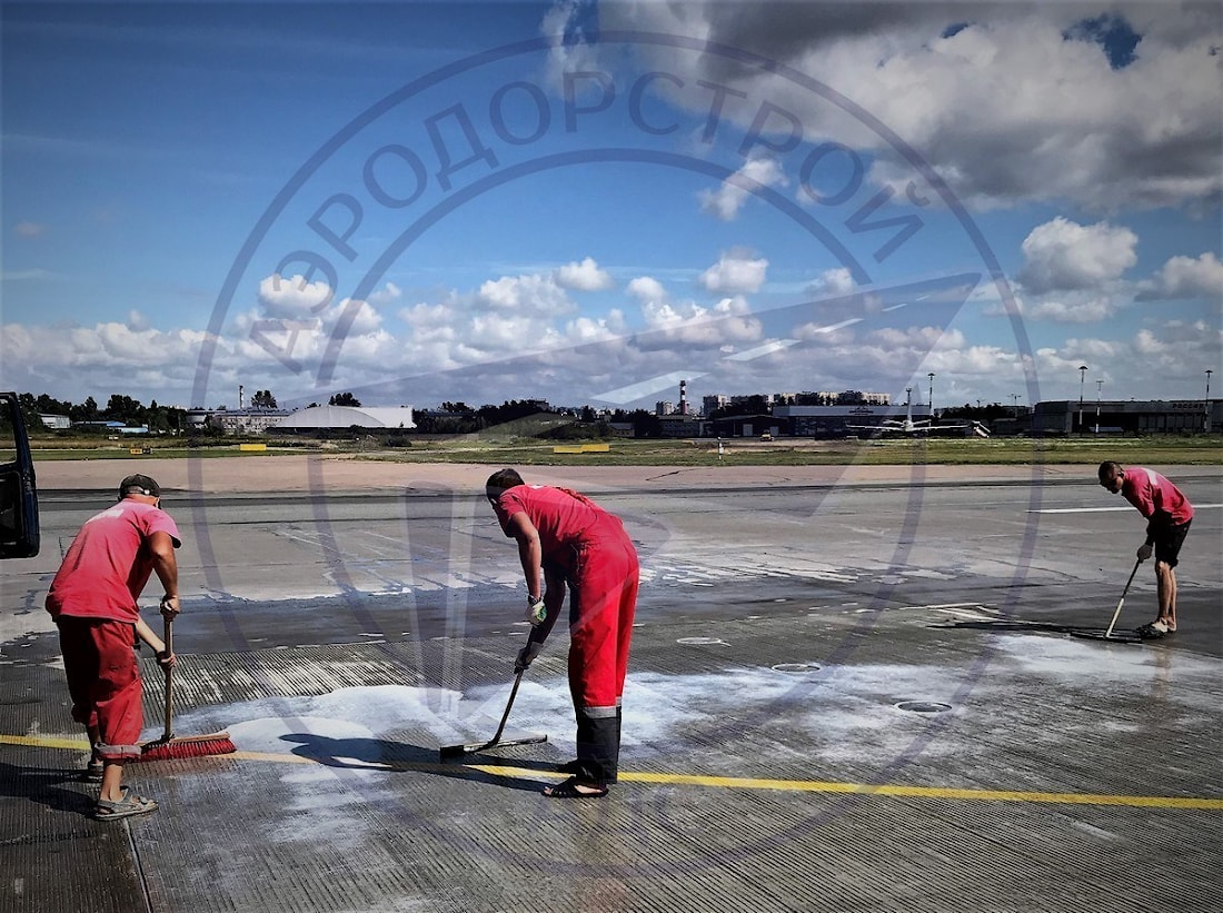 При строительстве и ремонте бетонных аэродромных покрытий рекомендуется производить гидрофобизацию поверхности. При поверхностной обработке гидрофобный состав наносится прямо на бетонное покрытие. В результате чего при высыхание образуется тонка пленка, защищающая бетон от проникновения влаги в поры.