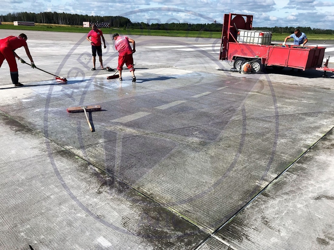 Гидрофобизация бетонных поверхностей: защита от влаги, повышение прочности и морозостойкости, продление срока службы аэродромных покрытий.