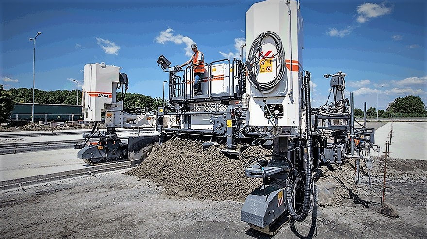 Wirtgen SP 64 позволяет устраивать цементобетонное покрытие шириной до 7 метров с толщиной слоя до 45 см. Как и большинство бетоноукладчик Wirtgen оснащен системой укладки стальной арматуры: возможна забивка/монтаж боковых и центральных анкеров (стальных штырей) и функцией самозагрузки арматуры.