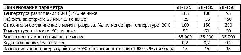 Характеристики мастики " АЭРОПОЛ " зависимости от марки