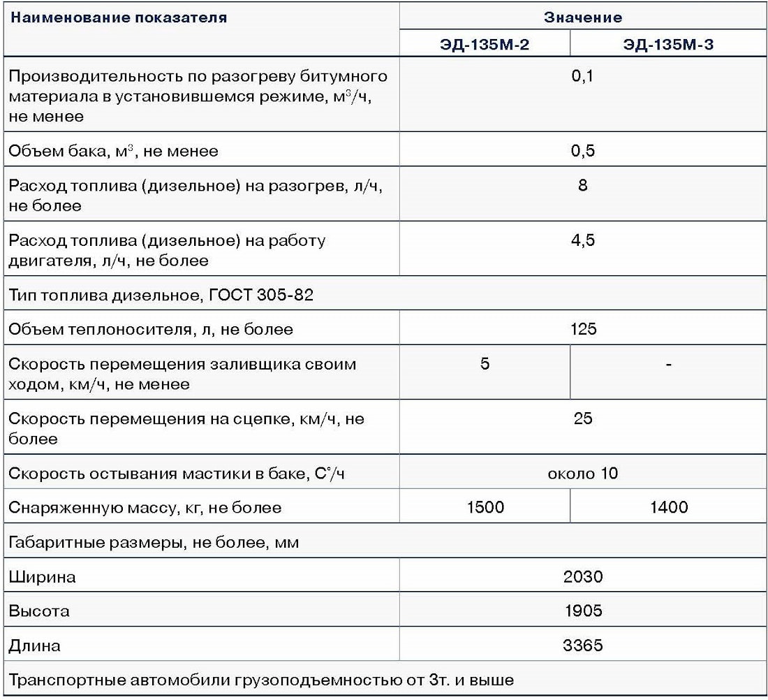 Основные же технические характеристики швозаливщика ЭД 135 сведены в таблицу ниже: