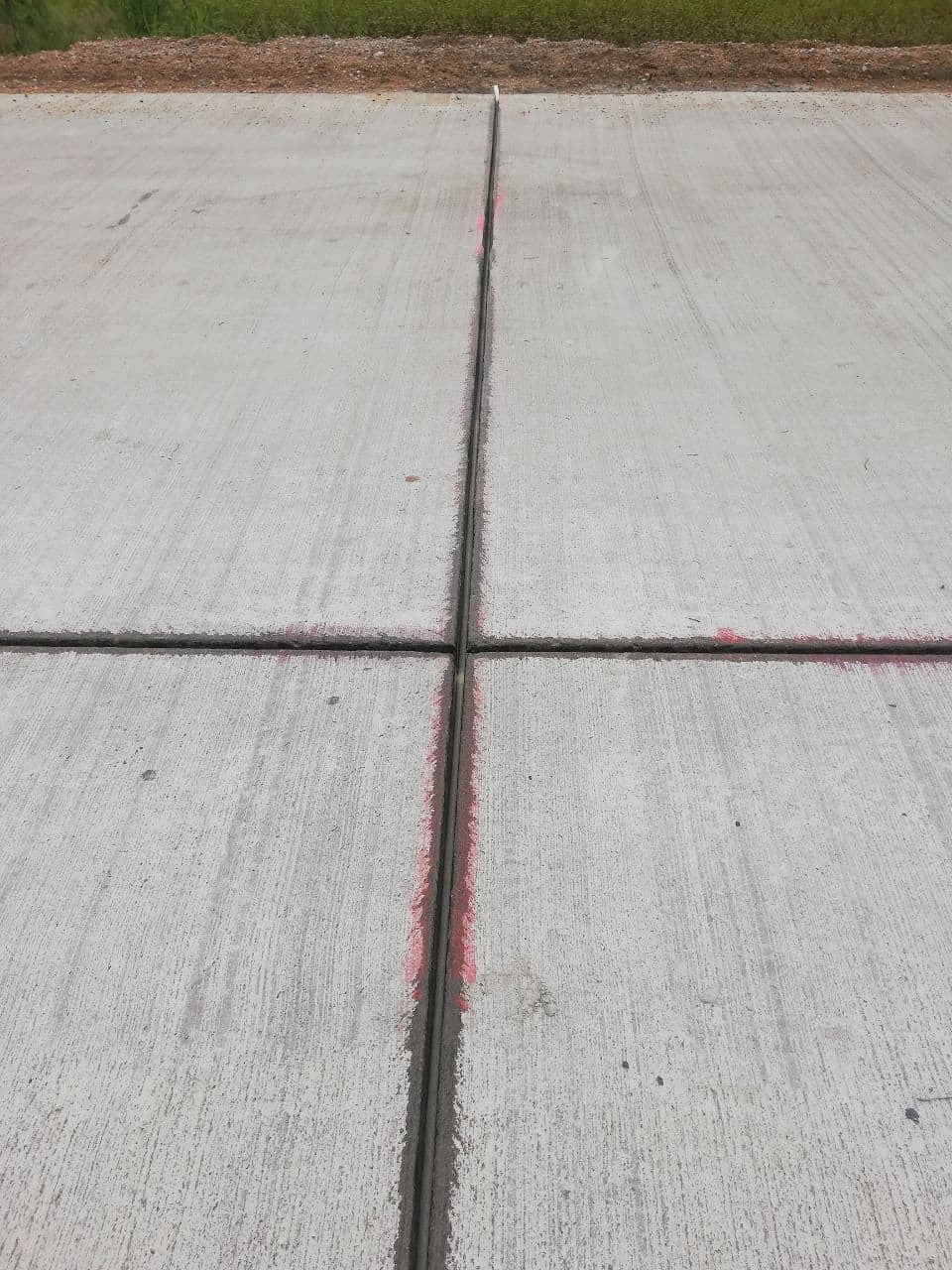 В большинстве случаев расстояние между деформационными швами проектируются и рассчитываются индивидуально с учетом прочностных характеристик слоёв основания, толщины слоя бетона, типа армирования, геометрических параметров площадки и условий последующей эксплуатации покрытия. В бетонном покрытии устраивают продольные и поперечные швы (сжатия и расширения), которые разделят покрытие на плиты определенной длины и ширины. Паз продольного шва нарезают ,как правило, после нарезки пазов всех швов сжатия. Пазы поперечных швов сжатия нарезают перпендикулярно к продольной оси покрытия .