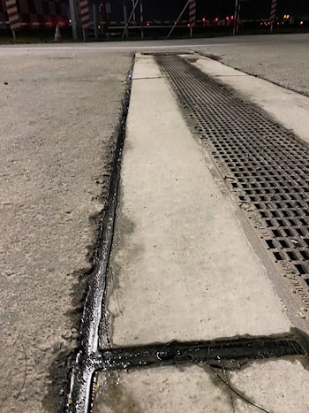Поперечные и продольные швы должны не только пересекаться между собой под углом 90 ° , но и подходить к бортовому камню, водоотводному лотку, смотровым колодцам и прочим элементам плоскостной инфраструктуры и другим типам покрытия также под прямым углом.