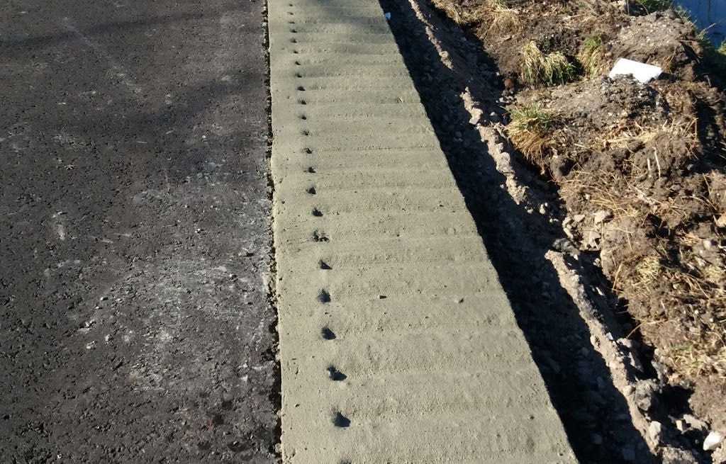 Это не только ведет к небезопасным ситуациям, но и ведет к дополнительному техническому обслуживанию. В Европейском союзе дорожников нашли решение этой проблемы с помощью рифлёного бетонного покрытия. Есть множество вариантов прикромочного бетона. Различные текстуры и возможности этого бетонного покрытия могут способствовать отводу воды. Поверхность прикромочного бетона устраивается с определенной текстурой ( рельефом). Чтобы участник дорожного движения получал сигнал при движении рядом с дорогой. По сути мы получаем шумовую полосу, представляющую собой искусственную неровность , выполненную в виде чередующихся поперечных полос и прочих узоров на поверхности бетонного покрытия, вызывающее вибрацию элементов подвески транспортного средства и увеличение шума качения колес с целью предупреждения водителя о приближении водителя к опасному участку дороги или съезде с полосы движения. Прикромочный бетон, как и все бетонные покрытия, является очень экологичным решением. Он имеет долгий срок службы и минимальный уход за дорожным покрытием