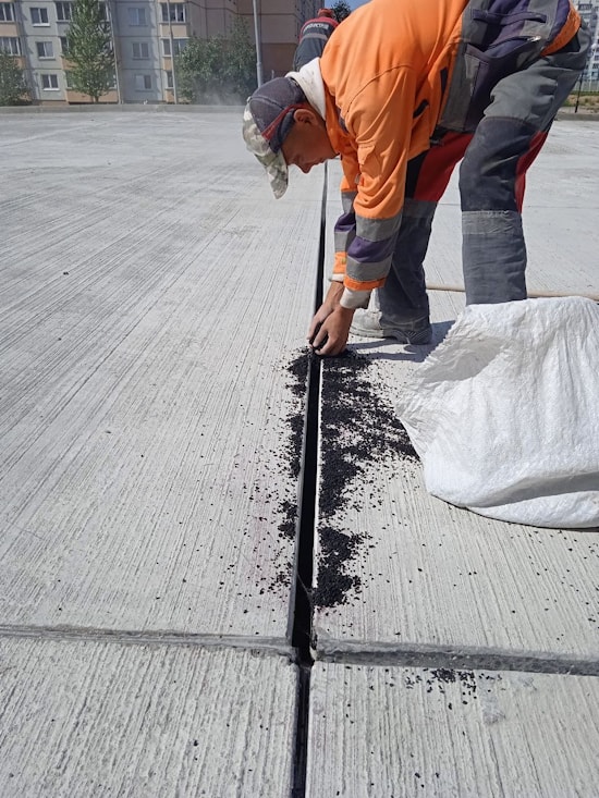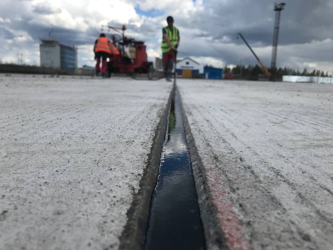 - Одна из наиболее распространённых ошибок допускается при герметизации швов. Зачастую неопытные специалисты заполняют камеру шва мастикой в уровень (заподлицо) с бетонной поверхностью. Такая герметизация грозит, тем что в ходе эксплуатации бетон подвержен температурным напряжением, которые вызывают сжатия цементобетонных плит ( в жаркий период) и как следствие выдавливанию излишков герметика над пазом шва. Мастика начинает цепляться за колёса транспортных средств, что приводит в дальнейшем к нарушению целостности герметизации. КАК НАДО: Пазы швов с фасками заполняют герметиком до уровня на 2–3 мм выше нижней кромки