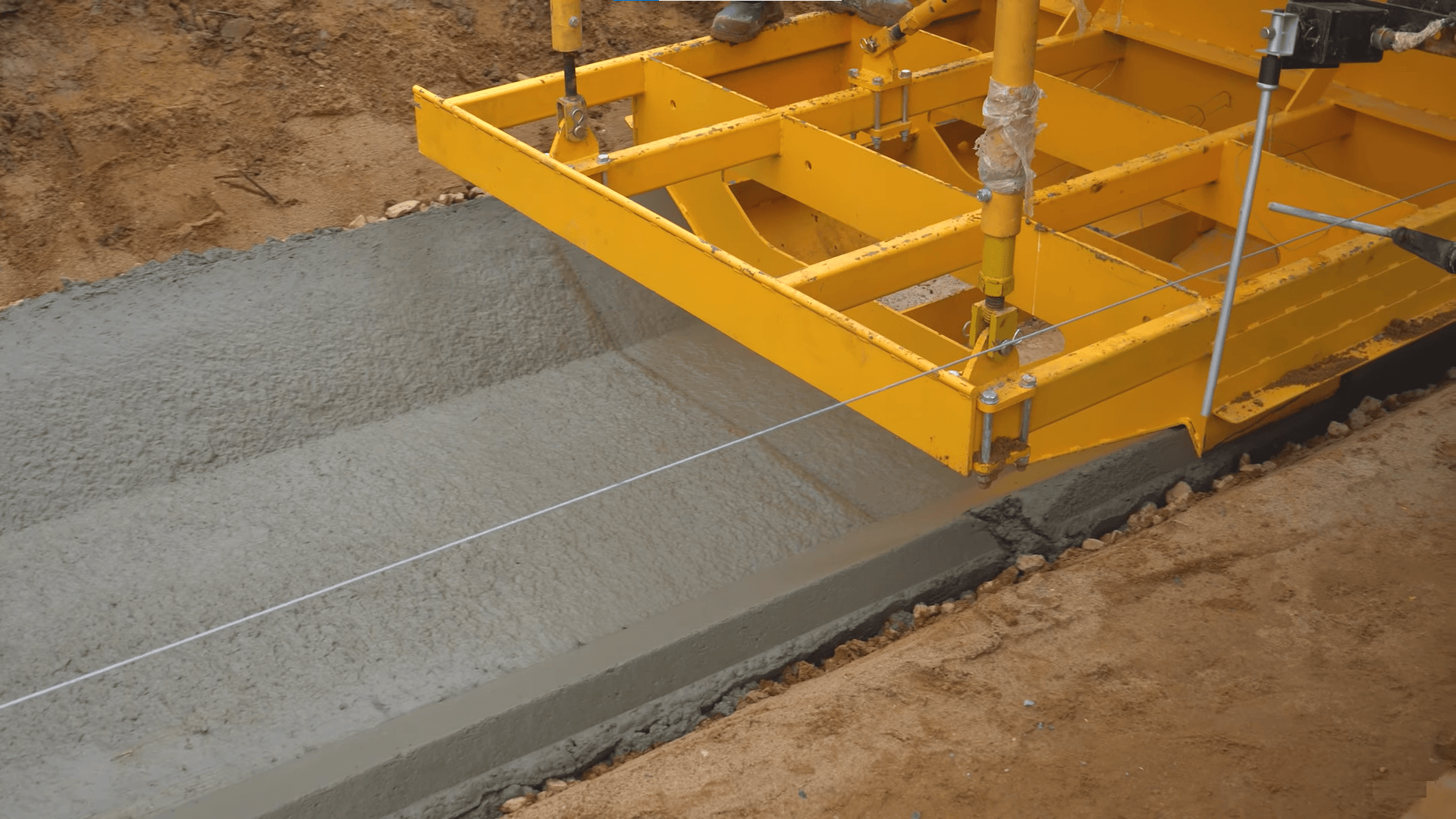 Кювет представляет собой бетонную конструкцию с основанием шириной 0,6-1 м и высотой 20-30 см. Толщина укладываемого бетона как правило 8 -10 см. Доставка бетона на объект осуществляется двумя способами. С помощью автобетоносмесителя и автосамосвалов. Подача бетона в бетоноукладчик происходит при помощи перегружателя, это обусловлено тем , что качество подъездных путей не всегда позволяет транспорту подъехать вплотную к бетоноукладчику. Бетон попадает на транспортную ленту, по которой подаётся непосредственно в бетоноукладчик, который уплотняет и формирует бетонную смесь будущий кювет. Траектория кювета задаётся с помощью копирных струн по которым движется бетоноукладчик.