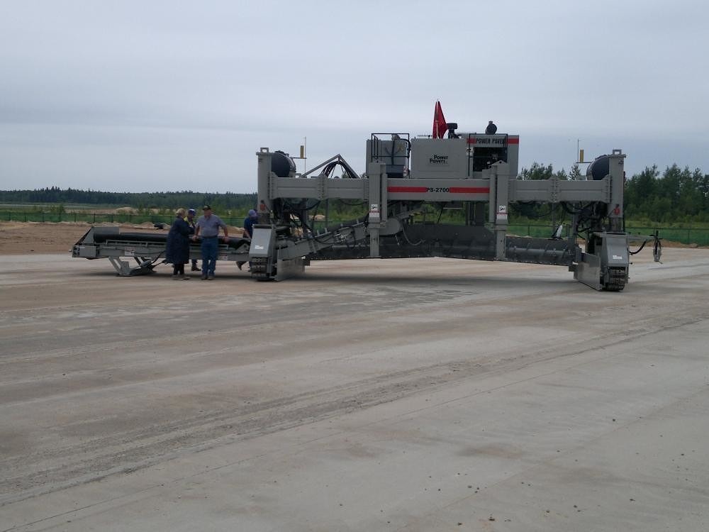 - Система финишной отделки включает в себя ленточный финишёр с гидравлическим приводом и шириной пояса 50 см. Далее поверхность бетона обрабатывается выглаживающей лыжей, обеспечивающей идеальную отделку поверхности.