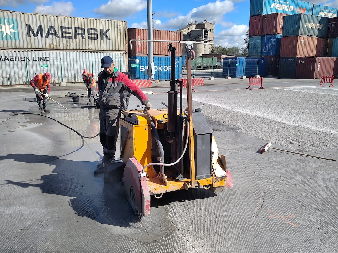 Так в 2022 году компания "АЭРОДОРСТРОЙ" выполняла комплекс работ по ремонту цементобетонного покрытия контейнерной площадки на территории Подольского предприятия железнодорожного транспорта. Бетонное покрытие имело ряд критических дефектов и разрушений. Силами наших специалистов были устранены участки глубокого шелушения и выкрашивания, сколы кромок и углов плит, была произведена замена участков монолитного бетонного покрытия , а также заменены плиты ПАГ в сборном покрытии площадки. Были выполнены работы по нарезке и герметизации деформационных швов.