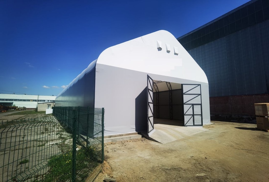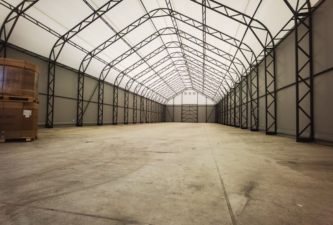 Перед началом строительства необходимо произвести устройство гравийно-песчаной подушки, после чего ее уплотняют и выполняют заливку бетонной (железобетонной) плиты. Закладка песчано-гравийной подушки позволяет предотвратить промерзание фундамента даже в северных широтах. В результате этого получают монолитное основание, площадь которого равна площади будущего ангара. Как правило мы устраиваем бетонное покрытие толщиной 160-180 мм из бетона марки B25-В30.
