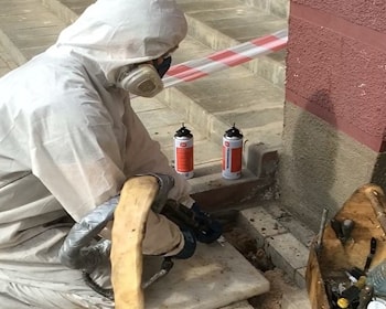 - Оборудование: инъекции проводятся с помощью мобильных установок, которые вводят геополимерный материал через технологические скважины в полу нижнего этажа или грунте. Для инъектирования используются трубки (пакеры) небольшого диаметра.