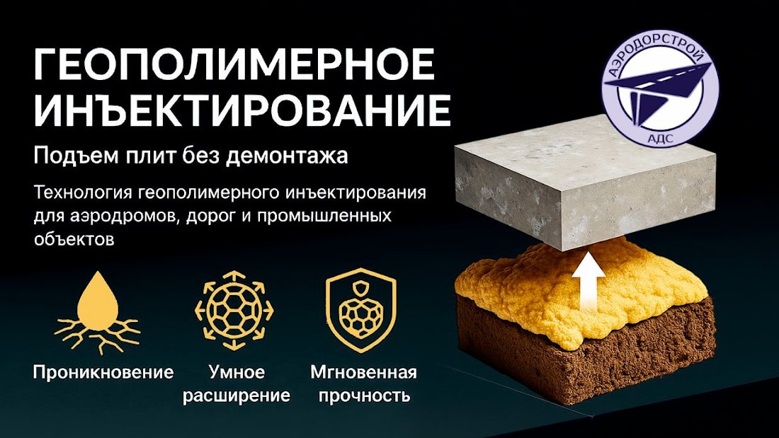 ООО «АЭРОДОРСТРОЙ» — эксперт в области восстановления и подъёма бетонных конструкций с применением передовой геополимерной технологии. Мы используем метод композитно-геополимерного инъектирования, обеспечивающий точность, долговечность и максимальную эффективность работ.