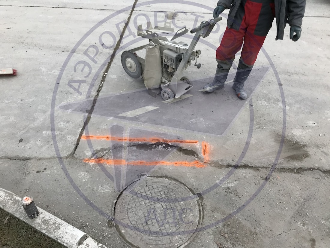 Устранение выбоин, раковин и сколов аэродромных покрытий